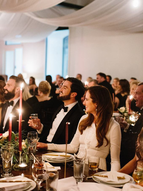 Decor reflected the holiday with rich gold and cranberry tones. Guests enjoyed an elegant spin on Chinese take-out for dinner complete with gold chopsticks. A champagne tower, DJ spinning records and a balloon drop created a fun, modern celebration that lasted well into the New Year.